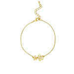 The Annie Bracelet features a fine gold chain with a flower charm set with opal crystals, adding a gentle, elegant touch to any outfit.