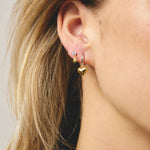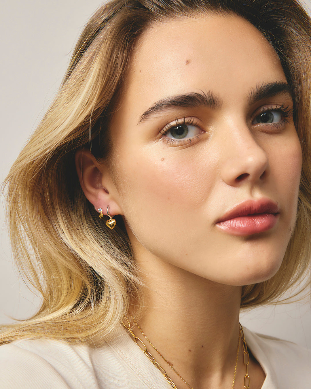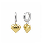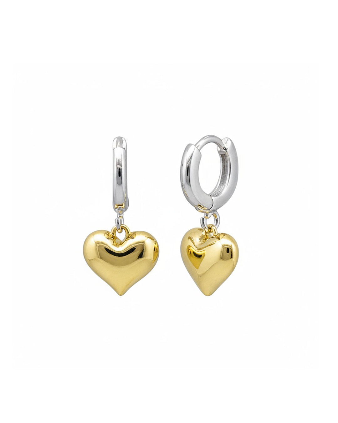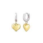 The Celine sleepers feature a silver huggie hoop with a gold heart hanging pendant. This piece's mix metal will add a pop to your everyday outfits.