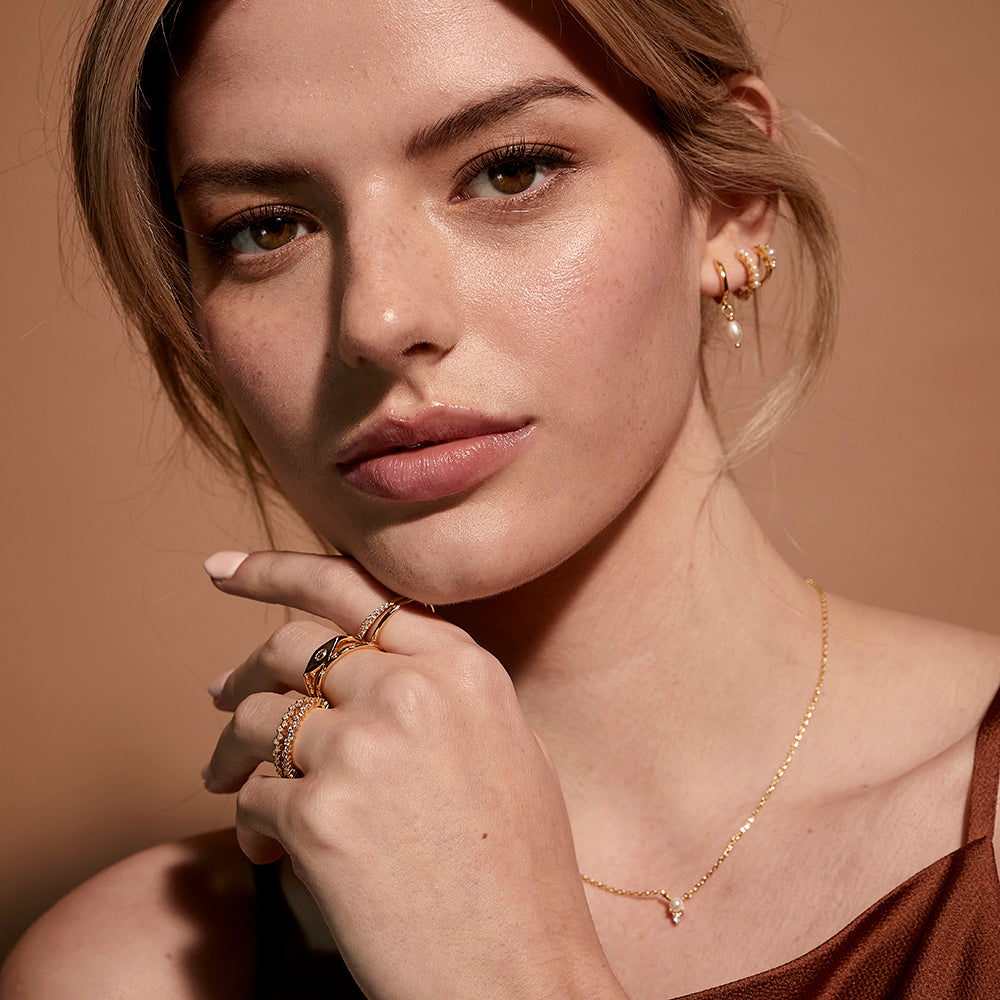 The Harriet Crystal Ring is a timeless style adorned with brilliant crystal stones. Ideal for pairing with your favorite gold bands.