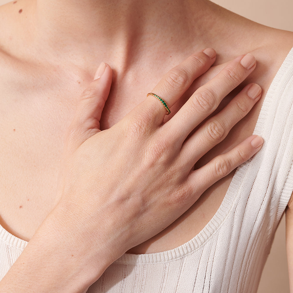 Trixie Crystal Ring is a classic style updated with green crystal stones. Perfect to stack with your favourite gold bands.