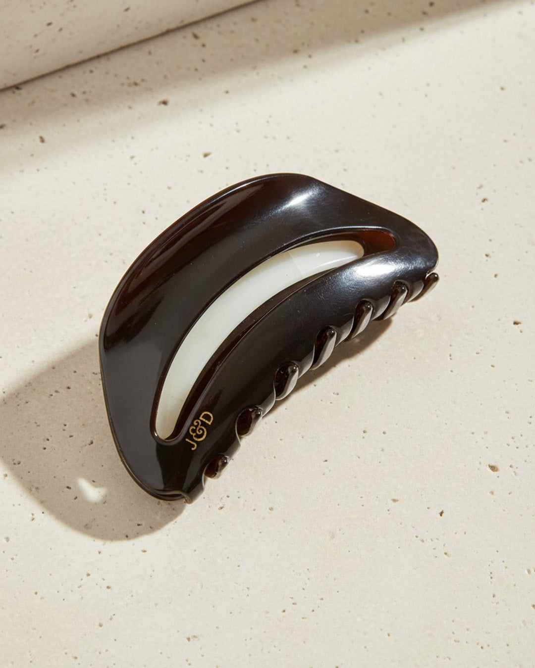 The Jenny Hair Clip in Espresso combines style and function all in one. Featuring an eye-catching cut-out detail, this larger claw clip keeps your hair securely in place throughout the day without any discomfort or damage. The rich espresso shade pairs beautifully with any outfit.
