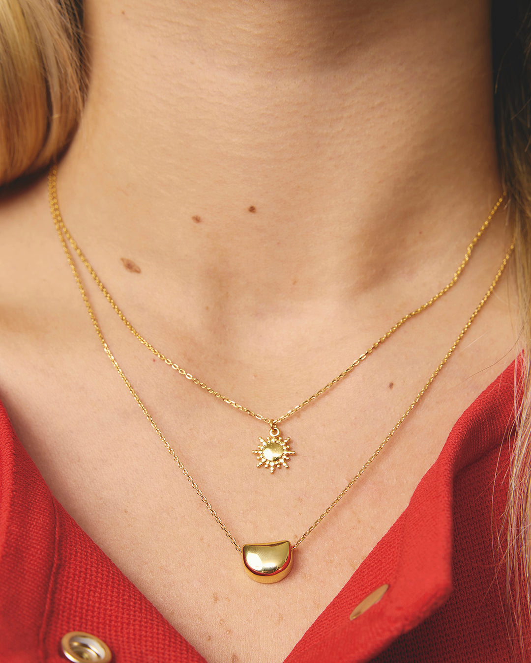 Introducing our Arya Necklace - Gold, featuring a modern minimal design with a half circle shaped sold pendant. Elevate any outfit with this sleek and versatile accessory. Meet your new favourite go-to piece for a touch of elegance.