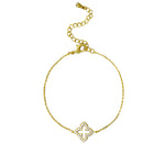 The Kim Bracelet features a delicate fine chain complemented by a four-leaf clover charm, elegantly inlaid with sparkling cubic zirconia crystals. This design blends subtle sophistication with a touch of luck, making it an ideal accessory for everyday wear or special occasions. Crafted with precision, it adds a refined yet meaningful detail to your jewellery collection.