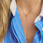 The Kim Necklace features a delicate fine chain in a y-shaped design, with gorgeous cubic zirconia crystal pendants. This necklace adds a subtle, timeless elegance to any outfit, ideal for special occasions.