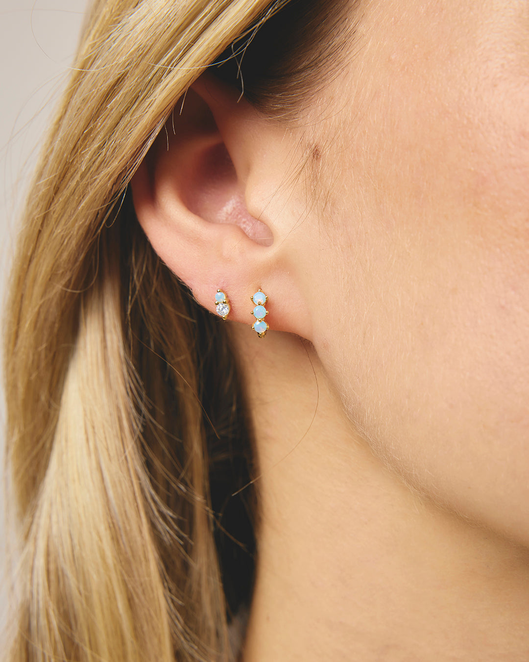 Delicate and understated, the Lena Studs bring a touch of sparkle to your everyday look. Featuring pale blue and clear crystals in a petite design, these studs offer the perfect balance of elegance and subtlety.