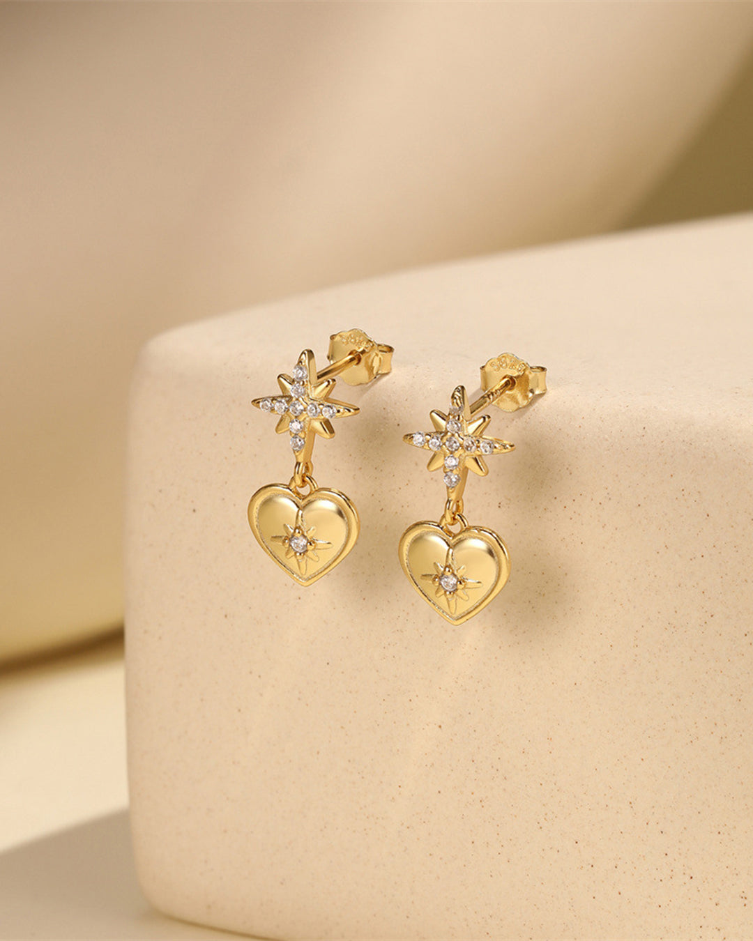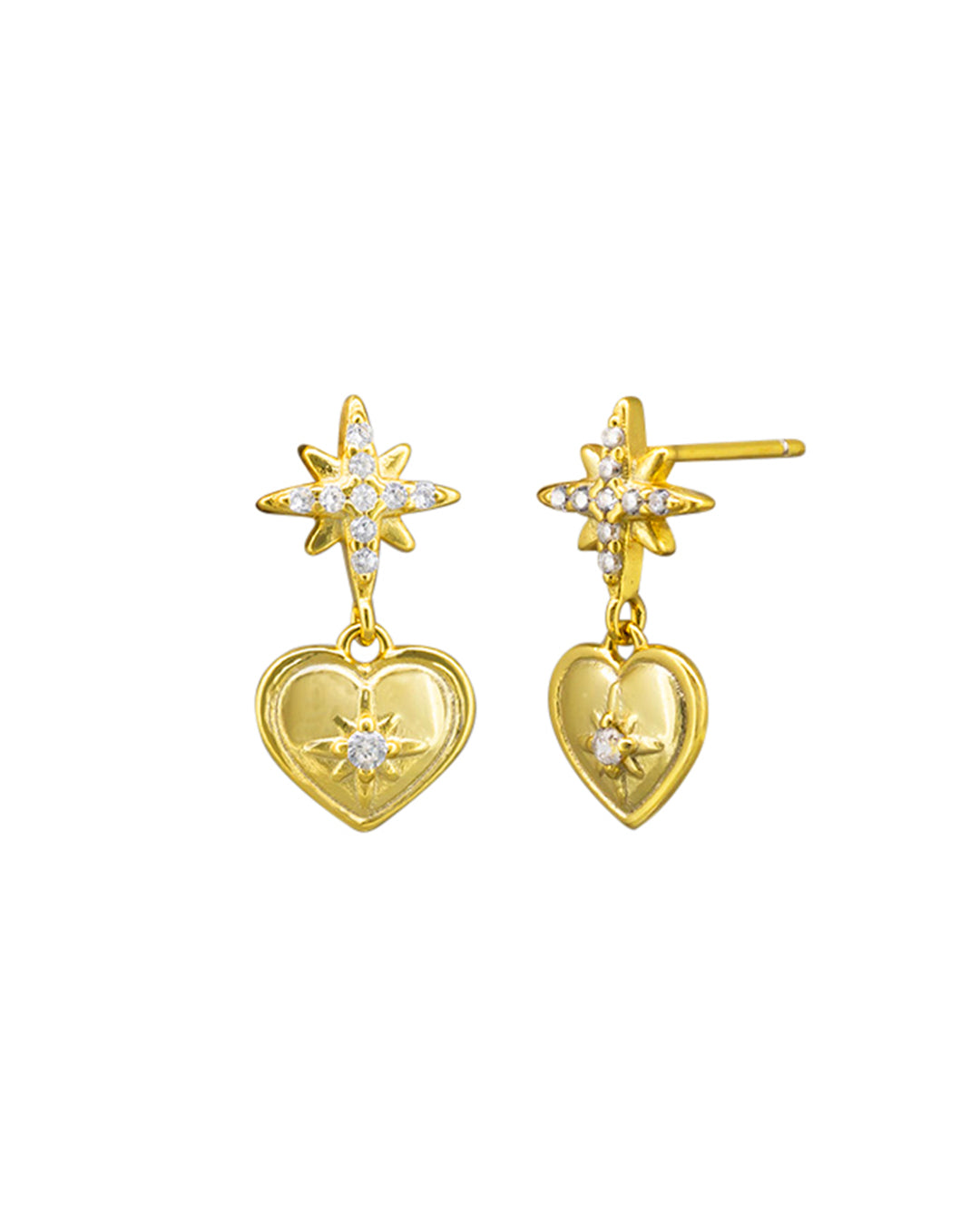 Rimma Studs bring a touch of celestial charm to your everyday look. These earrings feature a sparkling star crystal top that catches the light beautifully, paired with a delicate hanging heart charm. Perfect for adding a playful, romantic vibe to any outfit, whether you're dressing up or keeping it casual.