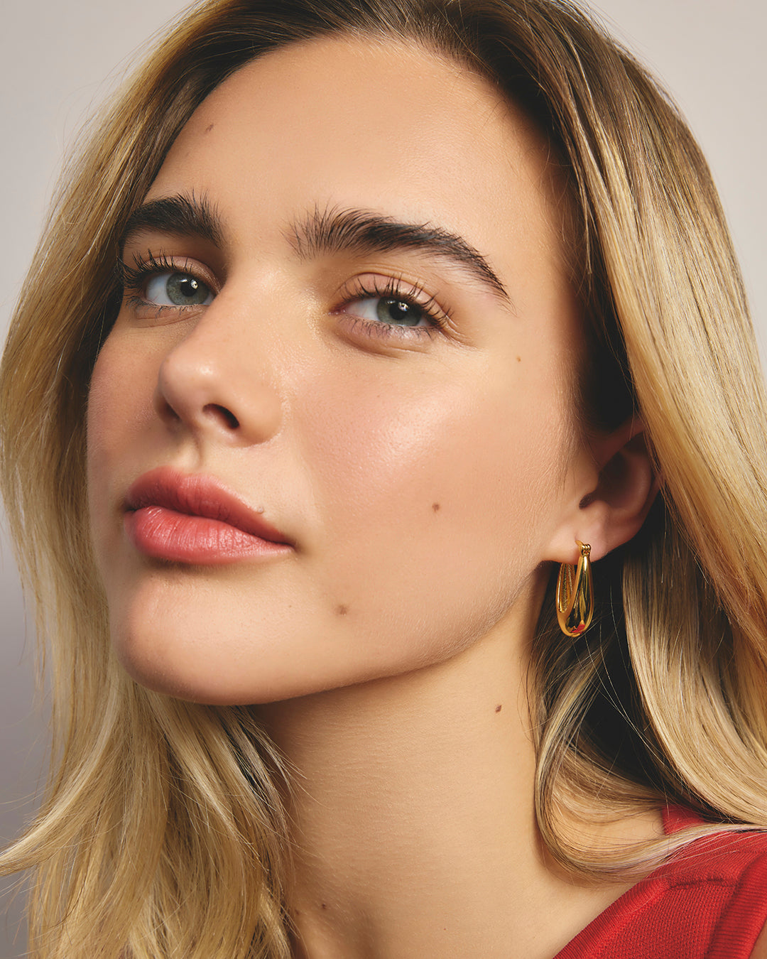 Add a touch of modern and sculptural elegance to your look with our Sasha Hoops in Gold. These elongated oval hoops are the perfect statement earring, effortlessly elevating any outfit.